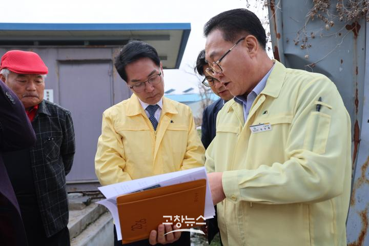 심 군수는 16일 고창읍 남흥동 일원의 용수로 정비 민원 현장을 찾아 사업 대상지와 주변 여건을 직접 살피고 주민 의견을 청취했다.