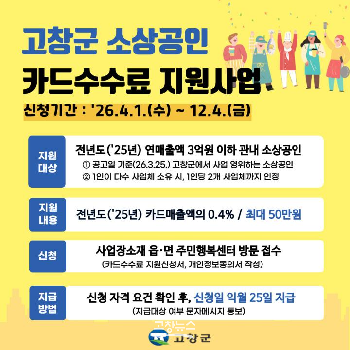 | 고창군 소상상공인 카드수수료 지원 사업 안내문(고창군 제공) |