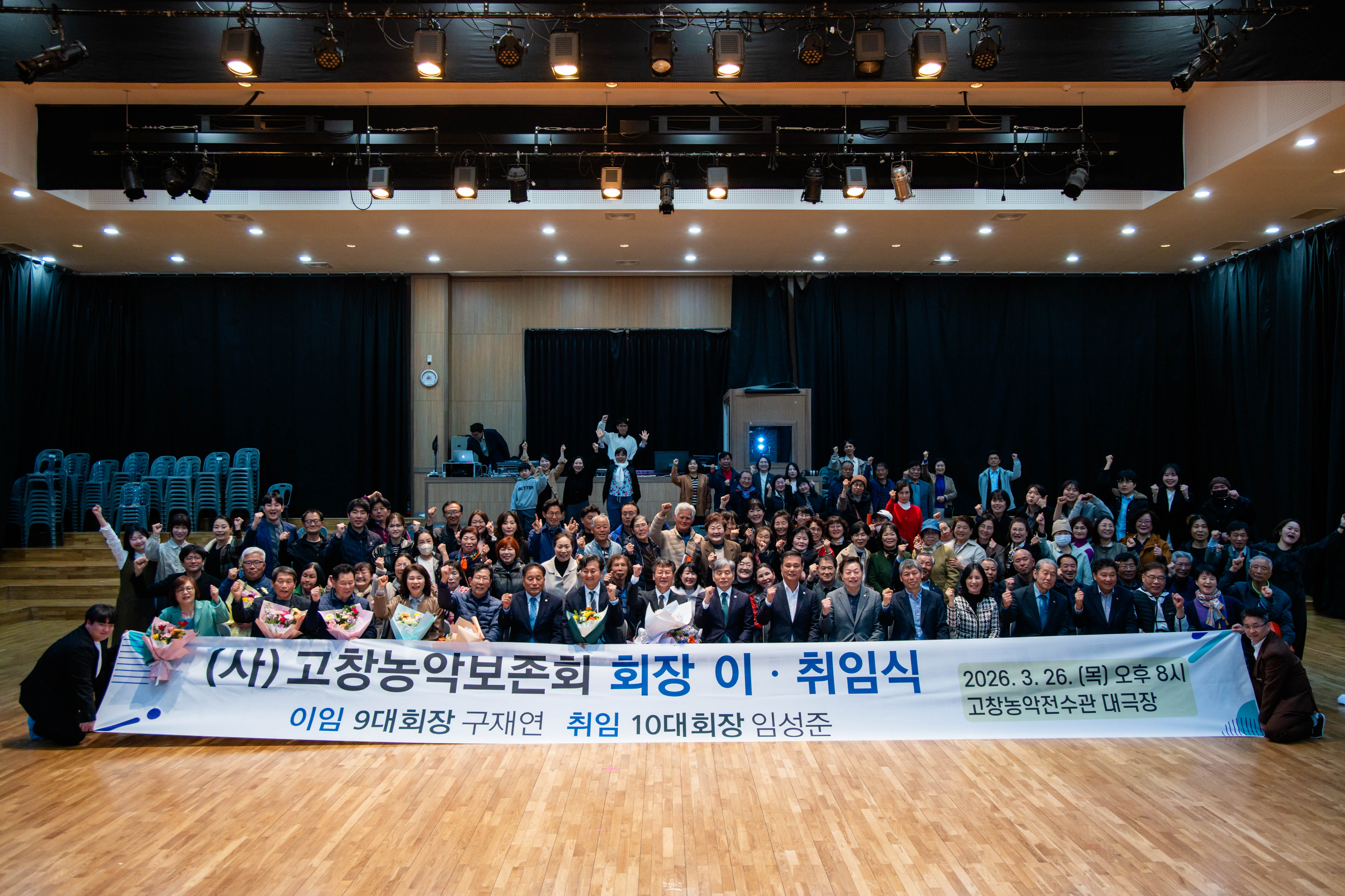 | (사)고창농악보존회가 3월 26일 고창농악전수관 대극장에서 제9·10대 회장 이·취임식을 개최하고 새 회장단 출범을 알렸다. (고창군 제공) |