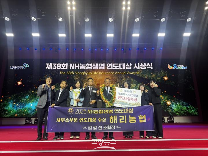 NH농협생명 연도대상은 전국 농·축협을 대상으로 한 해 동안 가장 뛰어난 실적을 거둔 사무소와 임직원을 선정하는 권위 있는 상으로, 이번 수상은 해리농협의 안정적인 경영과 우수한 사업 성과를 대외적으로 인정받은 결과다.