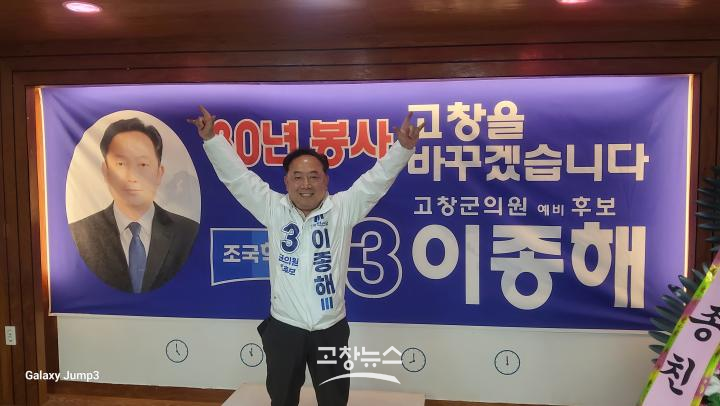 이종해 예비후보는 “오랜 시간 지역사회에서 봉사하며 군민들과 함께해 온 경험을 바탕으로 이제는 군의원으로서 고창 발전에 기여하겠다”며 “군민의 목소리를 최우선으로 하는 생활정치를 실현하겠다”고 강조했다.