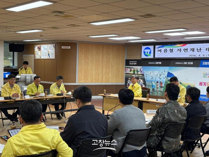 | 고창군은 9일 군청 회의실에서 ‘2026년 여름철 자연재난 대비 관계기관 대책회의’를 열고 재난 대응체계 점검과 협력 방안을 논의했다.(고창군 제공) |